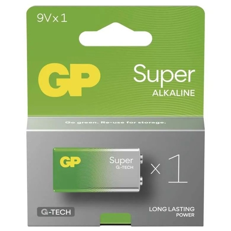 9V baterie GP Super má označení typu 6LR61 . Jedná se o alkalicko-manganovou baterii s ochranou proti vytečení. Skladovatelnost dosahuje až 5 let. Její pracovní teplota je - 20 °C až + 60 °C. Pokud hledáte baterie, které vám poskytnou spolehlivou a dlouhotrvající energii pro vaše elektronické zařízení, sáhněte po nových alkalických bateriích GP SUPER, které jsou vybaveny revoluční technologií G-TECH s výdrží o 50 % větší oproti ostatním alkalickým bateriím. S alkalickými bateriemi SUPER můžete očekávat dlouhotrvající a spolehlivé napájení pro vaše zařízení, ať už se jedná o dálkové ovladače, hračky nebo jiné elektronické spotřebiče. S touto vylepšenou řadou baterií od GP budete mít dostatek energie pro vaše nejnáročnější úkoly a činnosti. Nezáleží na tom, zda jste doma, v práci nebo na cestách, alkalické baterie SUPER se stanou spolehlivým partnerem pro dodávku energie, kterou potřebujete. Vylepšená řada GP alkalických baterií SUPER přináší nárůst výkonu a nepřetržitého provozu až o 50 % oproti ostatním běžným alkalickým bateriím, čímž jsou ideální volbou pro dlouhé chvíle strávené s rodinou a další aktivity, které vyžadují spolehlivý zdroj energie. GP SUPER baterie jsou vybaveny nejmodernější technologií G-TECH, která zajišťuje maximální výkon ve vašich zařízeních. Čtyři významné průlomové změny byly implementovány, zaměřující se na zvýšení výdrže energie a zajištění pevnějšího těsnění baterií. Technologie G-TECH využívá vysoko hustotní práškový zinek nové generace, který umožňuje rychlou a silnou výrobu energie, a zajišťuje tak vynikající výkon. Díky více kroužkovému jádru s vysoce čistým grafitem se zvyšuje elektrická vodivost, což přináší delší životnost energie. Inovativní interní konstrukce zvyšuje reakční plochu uvnitř baterie a zefektivňuje přenos energie v rámci článku. Dále je patentovaná technologie prevence proti úniku energie z baterie, která účinně zabraňuje vytečení a zajišťuje její bezpečné uzavření.