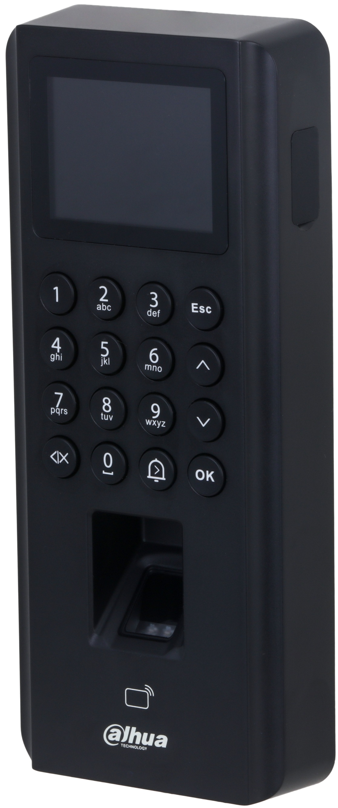 Autonomní čtečka karet s mechanickou klávesnicí, displejem a otiskem prstů. Možnost připojení druhé externí čtečky a použití pro řízení obousměrného průchodu. Autorizace uživatele otiskem, zadáním kódu, přiložením karty nebo potvrzení karty kódem. Pro obsluhu dveří je možné dále využít vstup pro odchodové tlačítko. Nastavení přes webové rozhraní nebo z programu SmartPSS Lite. Dohled z DMSS. Plastové provedení PC+ABS. Napájení PoE nebo 12 VDC. Parametry: Typ modulu: čtečka s mechanickou klávesnicí, displejem a otiskem prstu Výstupní formát Wiegand: 26/34/66 bit Externí čtečka/klávesnice: RS-485 Programování čtečky: přes klávesnici, software SmartPSS Lite, webovou stránku Karta: Mifare cards (IC card) 13.56 MHz Paměť: supports 30,000 users, 30,000 passwords, 30,000 cards, 5,000 fingerprint and 100,000 records Porty: RS-485, Wiegand, USB 2.0, Network Port, Wi-Fi 2,4 GHz, Alarm Input, Alarm Output, Alarm Linkage, Doorbell, Exit Button, Door Status Detection, Lock Control Max. zatížení výstupního relé: Supplies power to 1 lock (12 V, 500 mA or lower) or 1 card reader (12 V, 200 mA or lower) Optická signalizace: ano Audio signalizace: ano Provedení: plast Vzdálený přístup: mobilní aplikace DMSS, software SmartPSS Lite a DSS Napájení: PoE nebo 12 VDC/max.12 W Barva: černá