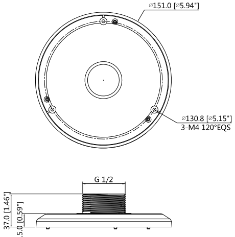 Krabice pod dome kamery Dahua HDBW(RP-Z/RP-VF), HDW(RP-Z) a PTZ kamery SD22. Kabel je protažen…