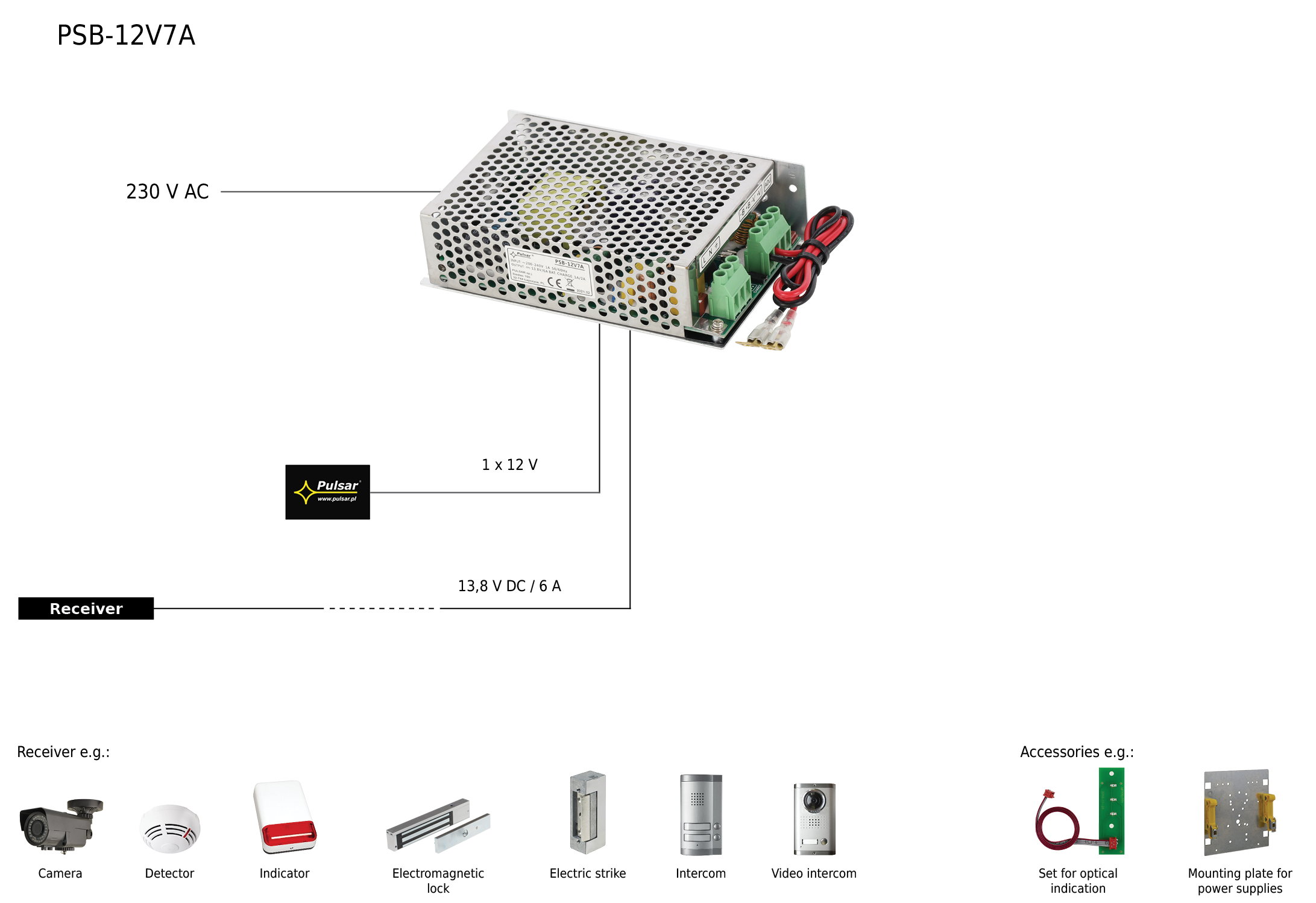 Kompletní specifikace * Vestavný zálohovaný napájecí zdroj s baterií * Pulzní napájecí zdroj, výstup DC 13.8 V / 7 A * Vhodný pro napájení analogových i HD kamer * Rozměry 159 x 98 x 42 mm * Hmotnost: 370 g * Pasivní chlazení * Optická signalizace LED * Rozsah regulace výstupního napětí: 13.5 V - 14 V * Výstupy: svorkovnice (2 x V+, 2 x V-) * Napájení: AC 200 V - 240 V, 50 / 60 Hz * Ochrany: zkrat (SCP), nadměrný odběr (OLP), přepětí (OVP), ochrana akumulátoru proti hlubokému vybití (UVP) * Vysoká účinnost až 90% * Nabíjecí proud baterie 1A / 2A * Materiál: železo, antikorozní úprava, barva stříbrná * Provozní podmínky: teplota: -10°C až +40°C, relativní vlhkost 20% až 90% *