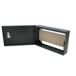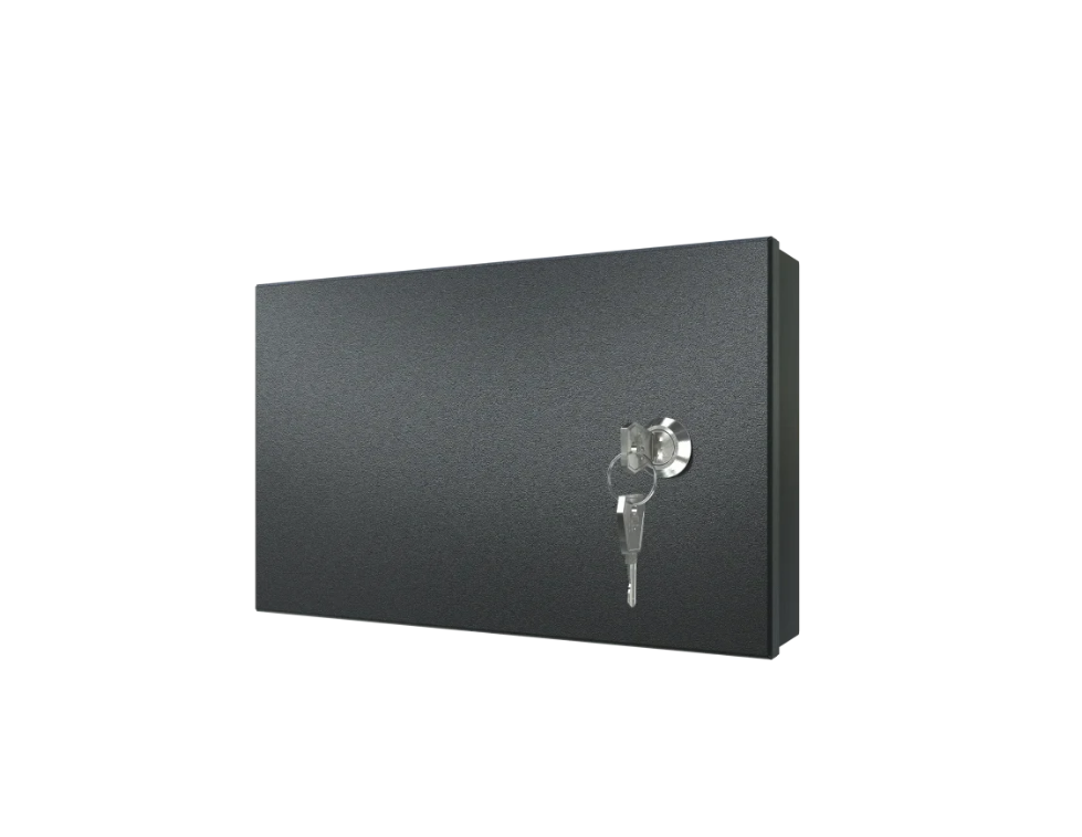 Kompletní specifikace * Univerzální kovová skříňka pro povrchovou montáž s montážní deskou z dřevotřísky * Rozměry: 240 x 150 x 50 mm * Hmotnost: 640 g * Montáž: zavěsitelné na zeď * Určeno pro vnitřní použití: IP20 * Odnímatelná přední dvířka * Uzamykatelná přední dvířka, náhodný kód klíče (1 x zámek + 2 x klíč v balení) * Možnost otočení dveří – levý či pravý pant * Konstrukce je přizpůsobena požadavkům ochrany osobních dat (GDPR) pro informace, které musí být chráněny a bezpečně přechovávány * V horní a spodní části skříně jsou snadno vylamovatelné kabelové průchodky * Nosnost 2 Kg * Materiál: železo, tloušťka 0.6 mm, antikorozní úprava * Barva černá *